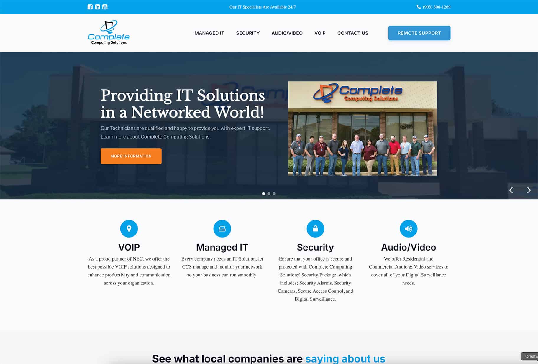 Complete Computing Solutions is one of the largest IT Managed Service Providers in the Texarkana Area offering Managed IT, Security, Phone Systems, and Audio and Video services.