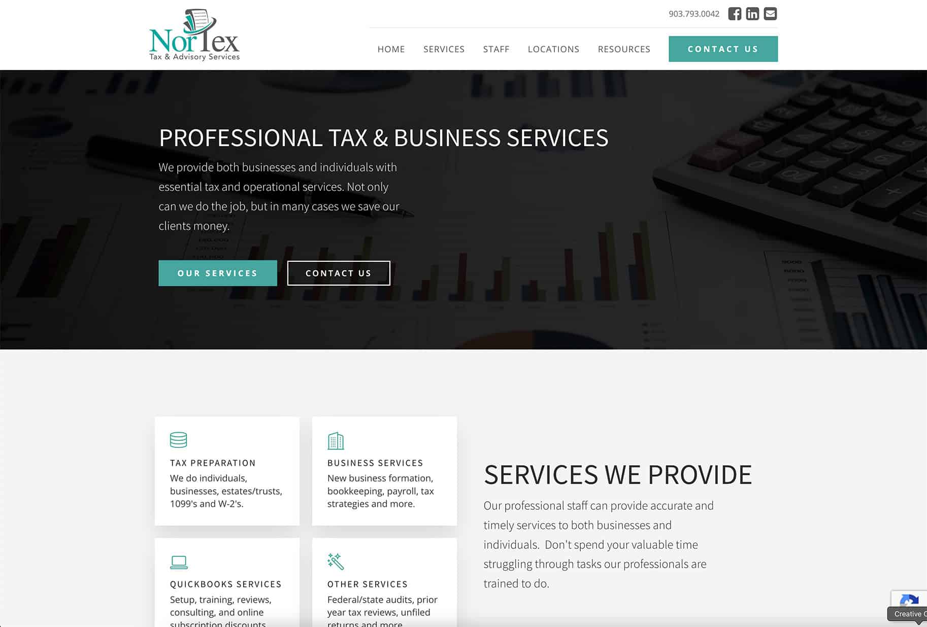 NorTex Tax & Accounting Services opened a new location on Richmond Road offering professional Tax & Business Services to the Texarkana Area. The project was a new website design focusing on being clean and user friendly.